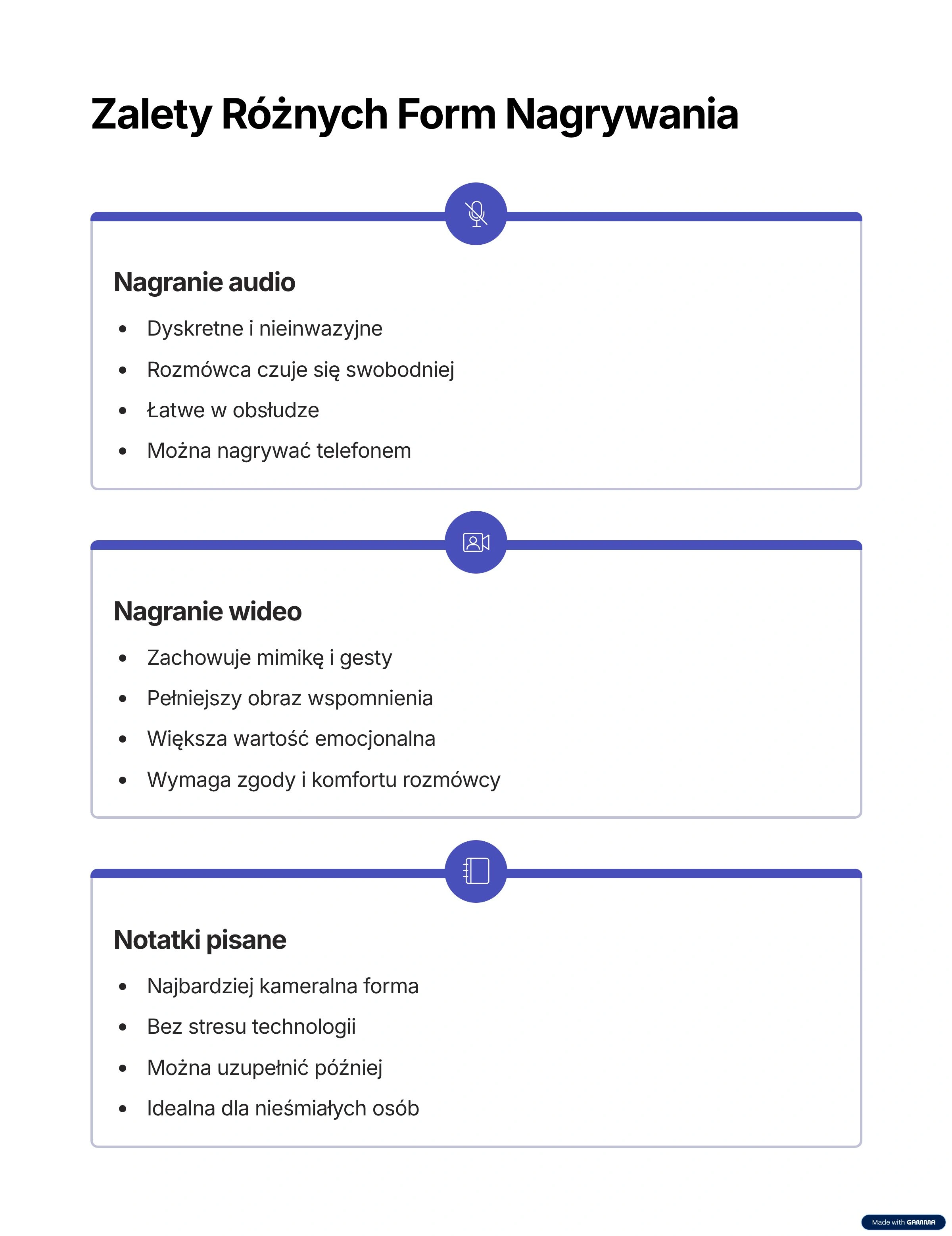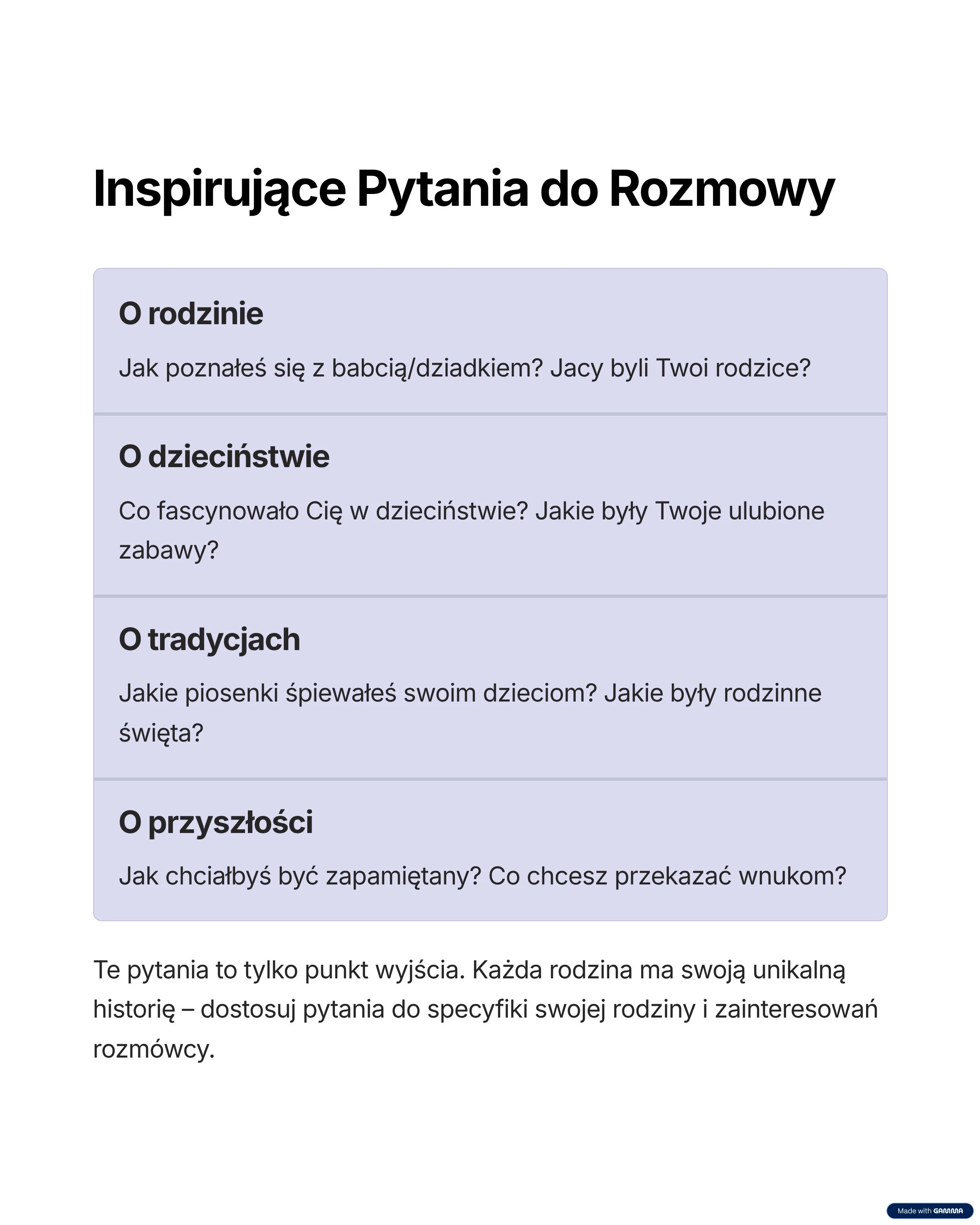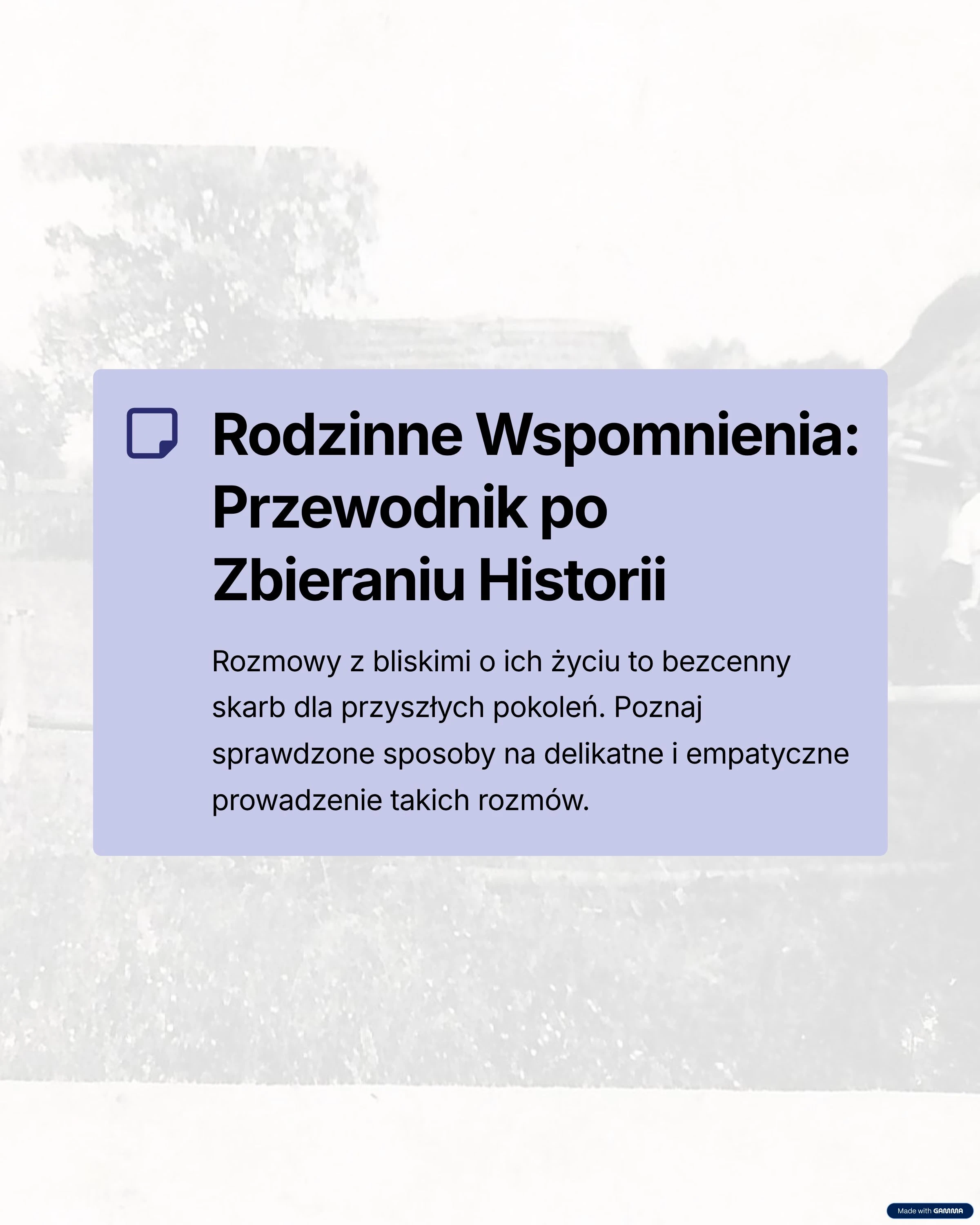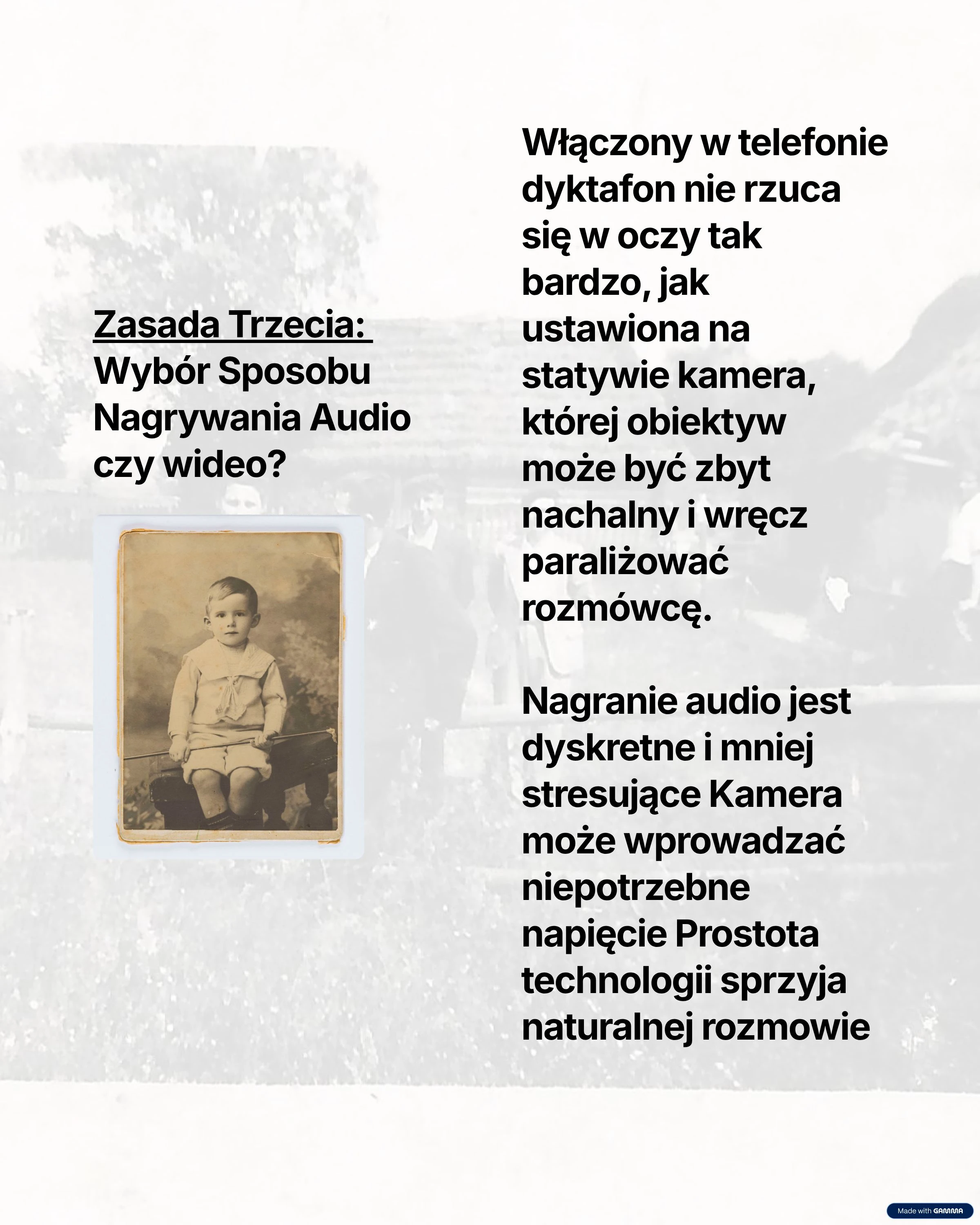 Rozmowy z bliskimi, szczególnie seniorami, których przy okazji odwiedzin rodzinnych stron mamy dosłownie na wyciągnięcie ręki, dostarczą więc nie tylko konkretów w postaci dat, imion, nazwisk, miejsc urodzenia czy śmierci. Ale też rodzinnych historii, anegdot o służbie wojskowej, emigracji zarobkowej, a czasem wojennych losach. Warto te rozmowy nagrywać, choć oczywiście trzeba uzyskać zgodę rozmówcy. Na pewno warto robić notatki, które można później uporządkować, czy to w arkuszu kalkulacyjnym, czy jednym ze specjalnych programów genealogicznych. Może to być choćby MyHeritage czy Family Tree Builder.