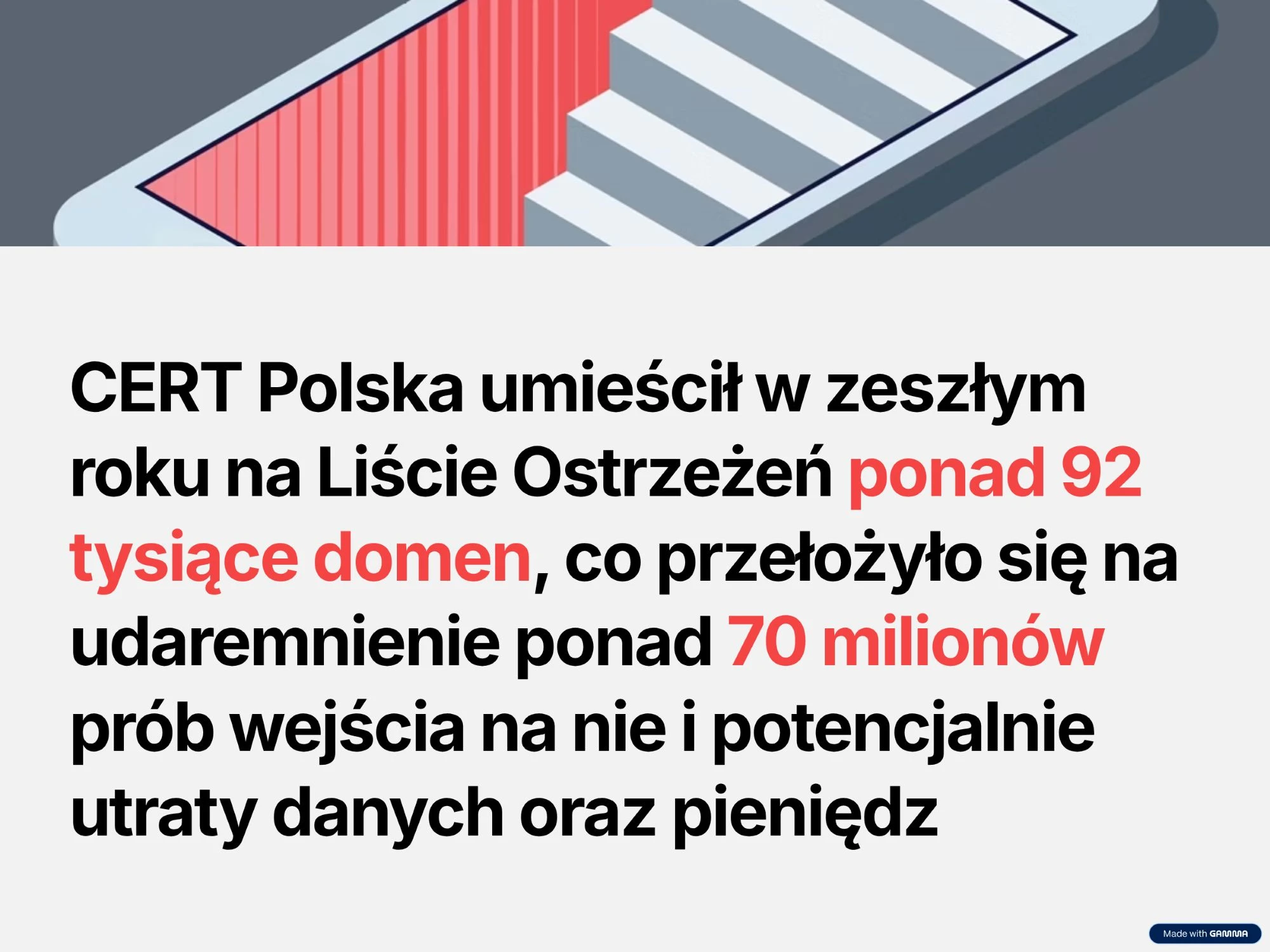 – Pokazuje to zarówno aktywność cyberprzestępców, jak i, a nawet przede wszystkim, rosnącą świadomość społeczną Polaków w zakresie cyberbezpieczeństwa. Dzięki tym zgłoszeniom oraz działaniom własnym, zespół CERT Polska umieścił w zeszłym roku na Liście Ostrzeżeń ponad 92 tysiące domen, co przełożyło się na udaremnienie ponad 70 milionów prób wejścia na nie i potencjalnie utraty danych oraz pieniędzy przez niedoszłe ofiary przestępców – informuje mnie Iwona Prószyńska, szefowa biura komunikacji NASK.