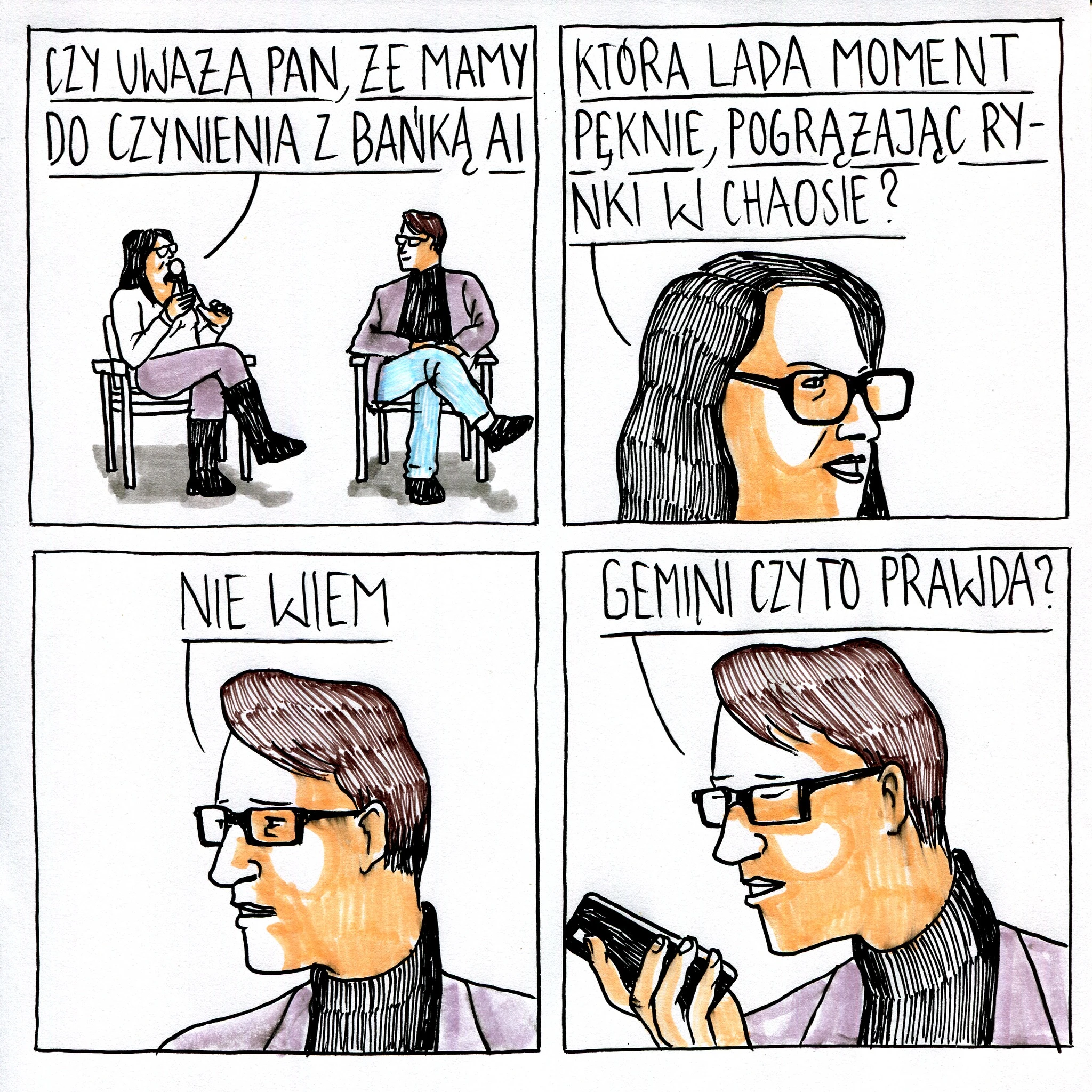 Nawet Sundar Pichai z Google przyznał w rozmowie z BBC, że w branży pojawiły się "elementy irracjonalności". Podobne sygnały płyną z banków centralnych i Międzynarodowego Funduszu Walutowego. Dużo pieniędzy na papierze, mało konkretów, powolny zwrot z inwestycji i ekstremalna koncentracja kapitału w kilku firmach. Brzmi znajomo? Dokładnie tak wyglądał początek pęknięcia bańki dotcomów.
