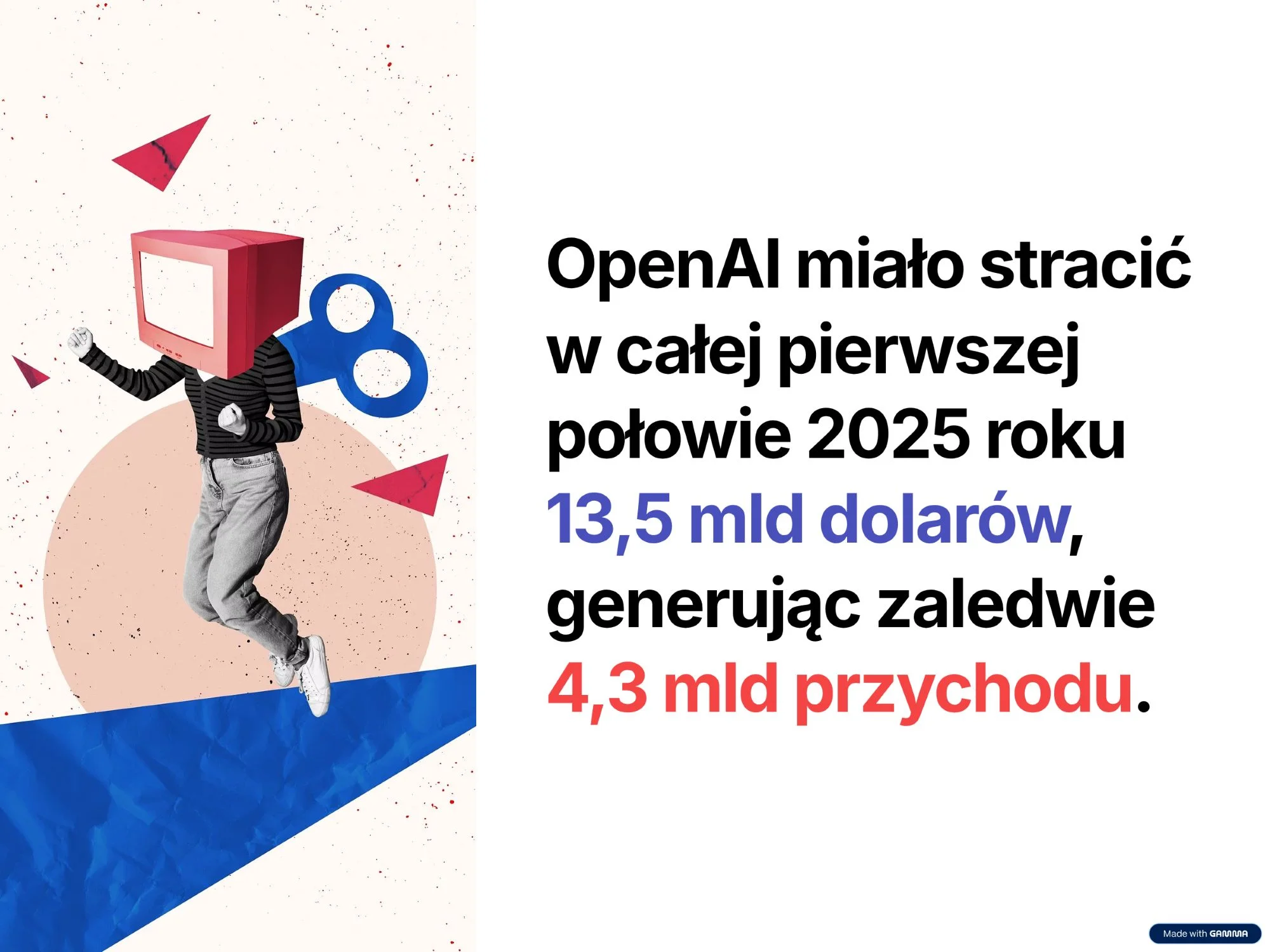 Nie jest tajemnicą, że zespół Altmana przepala środki w zawrotnym tempie. Do pewnego stopnia jest to naturalne zjawisko w przypadku szybko rosnących startupów technologicznych, które chcą zdominować rynek – jak obserwowaliśmy to choćby w przypadku Ubera, Bookingu czy Airbnb. Jednak taka skala wydatków jest astronomiczna nawet jak na standardy młodej branży AI. Co więcej, według ostatnich doniesień "The Information" OpenAI miało stracić w całej pierwszej połowie 2025 roku 13,5 mld dolarów, generując zaledwie 4,3 mld przychodu.
