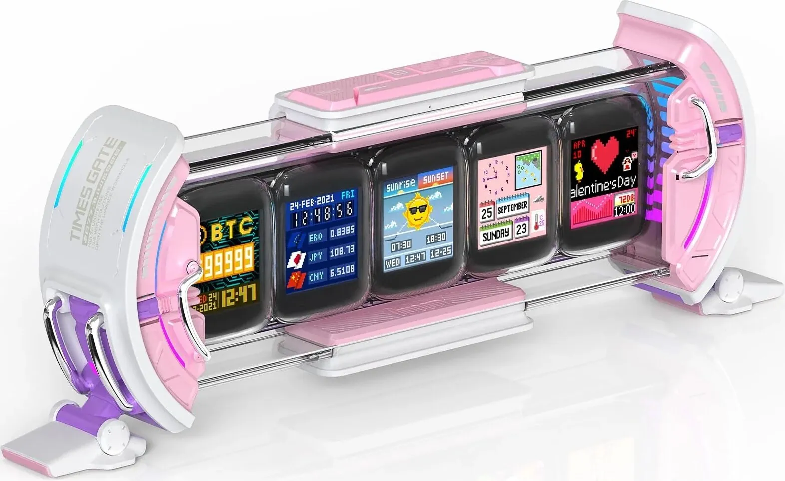 Ten prezent to taki typowy gadżet. Wyświetlacz informacyjny wykorzystuje stylistykę Pixel Art i ma inspirowany stylem sci-fi design. To świetna ozdoba każdego biurka lub pokoju gier. W urządzeniu zamontowano pięć pełnokolorowych wyświetlaczy typu LCD IPS o przekątnej długości 1.44”, które mogą wyświetlać dynamiczne animacje, gify oraz statyczne obrazy pikselowe. Obsługuje się je poprzez aplikację Divoom, a dane przesyłane są na nie z użyciem Wi-Fi. Na ekranach można też śledzić w czasie rzeczywistym dane z mediów społecznościowych (np. YouTube, Facebook) oraz aktualne informacje finansowe, takie jak kursy akcji.