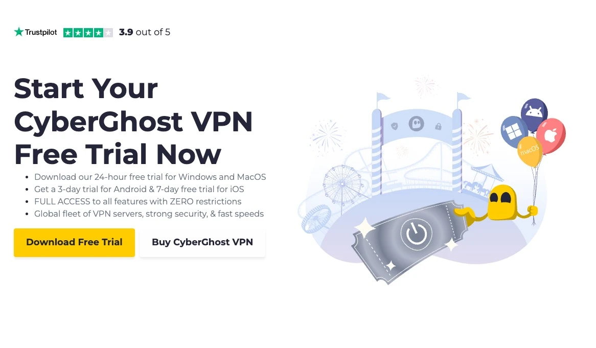 CyberGhost VPN - nawet 7-dniowy okres w próbny